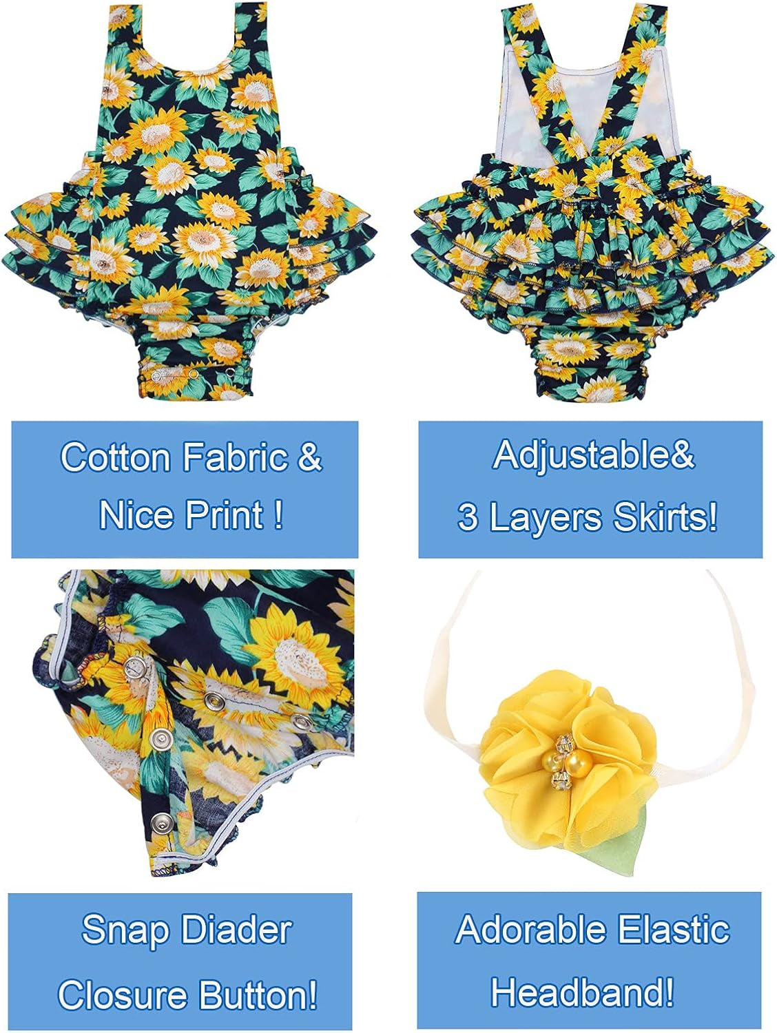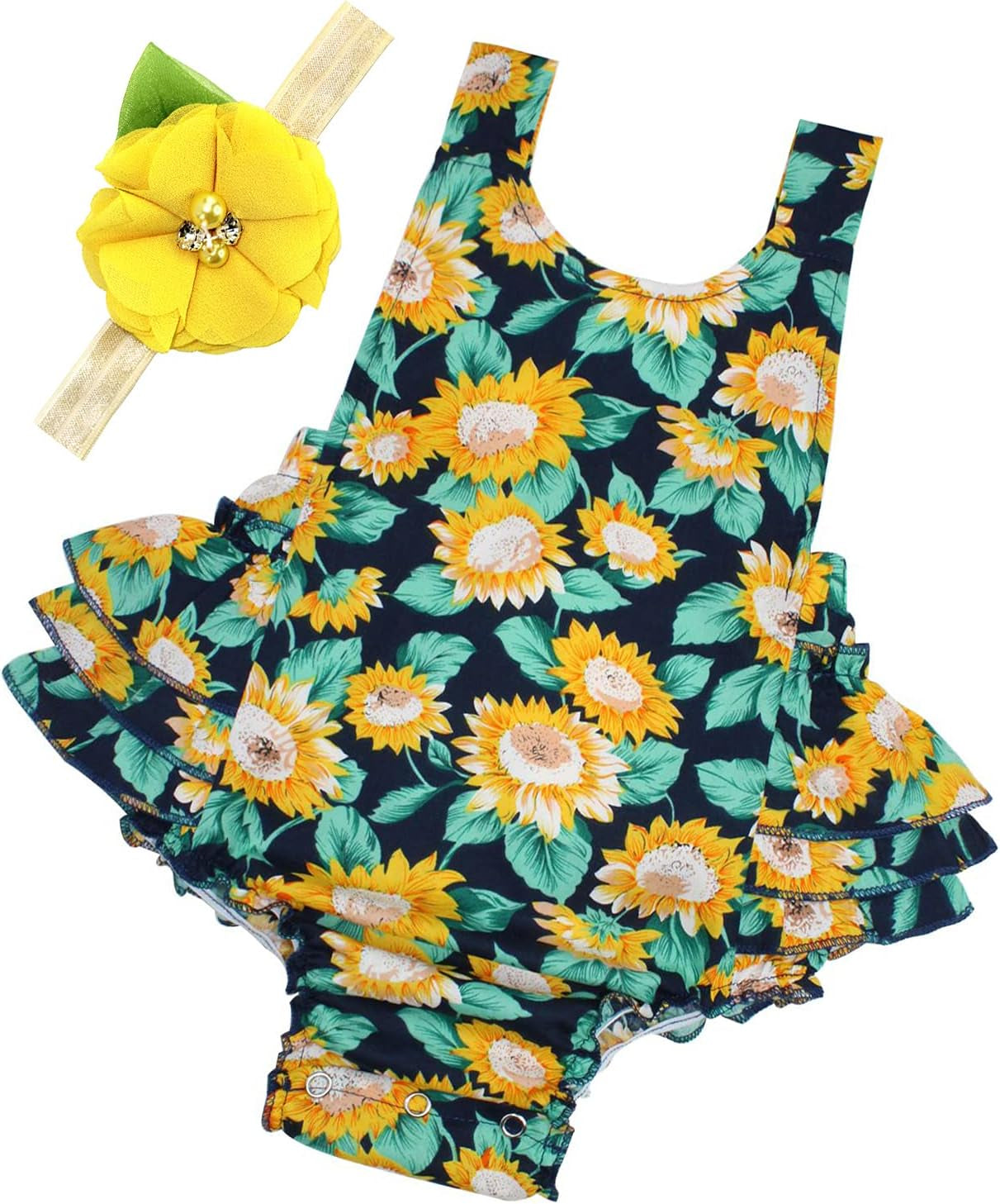 Kids Baby Girls Floral Romper Sunsuit Summer Outfit Set Clothes,9E59A,6-12 Months(Size M)