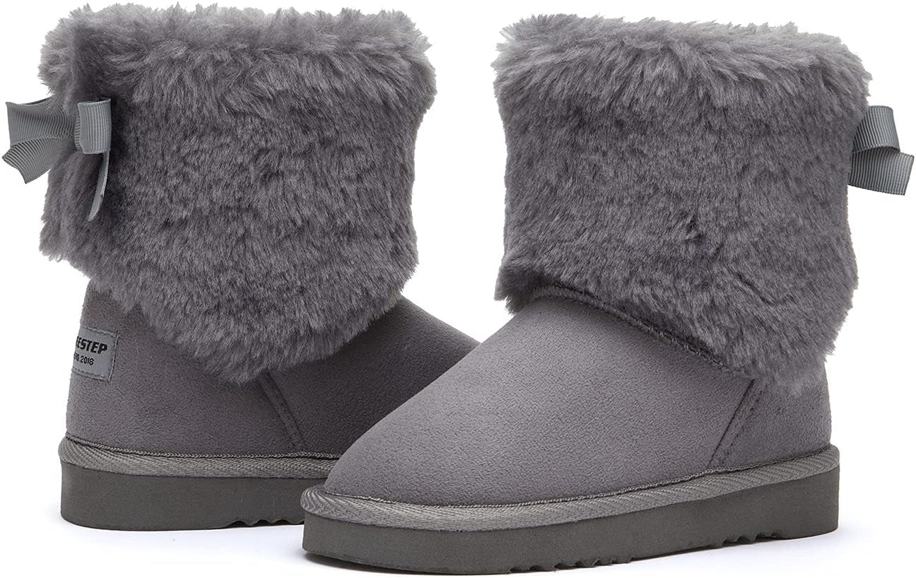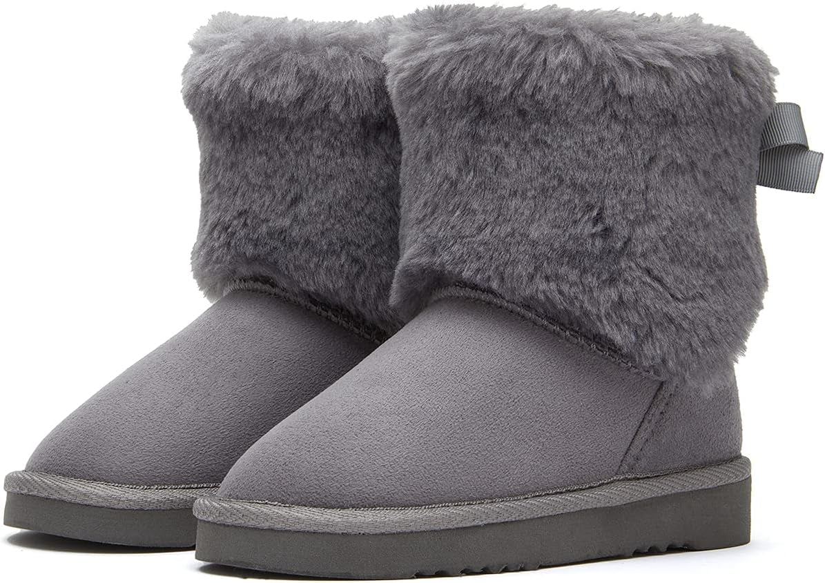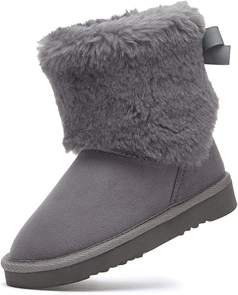 Girls Toddler Little Kid Warm Fur Winter Ankle Flat Snow Boot(8 Toddler, Fur Grey)