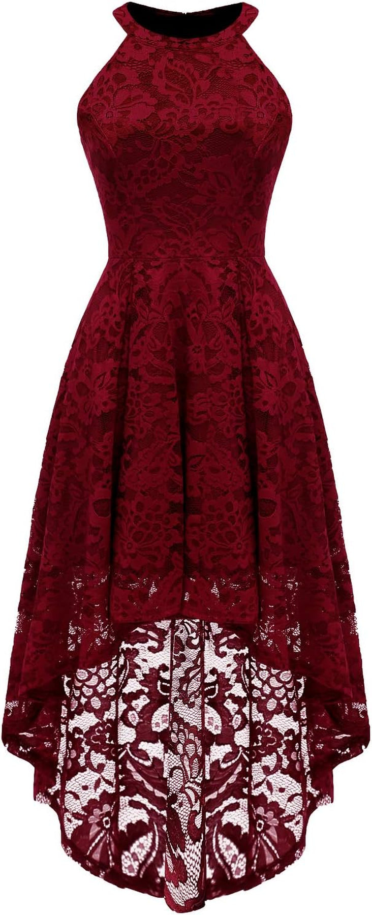 Women Halter Lace Wedding Guest Dress Hi-Lo Cocktail Party Bridesmaid Formal Dresses